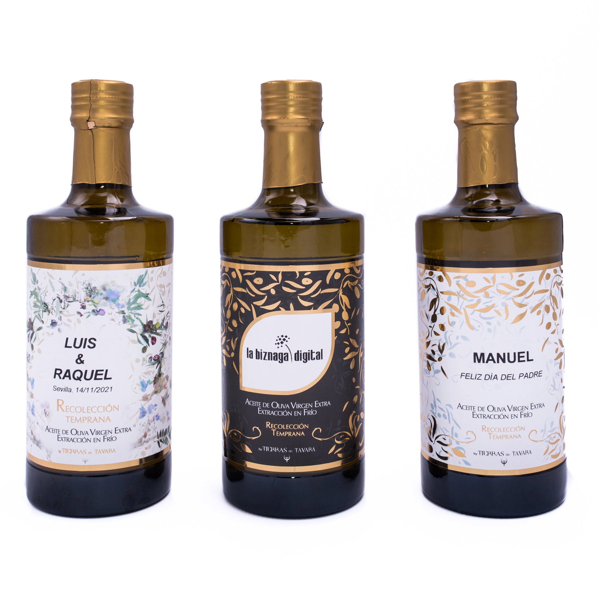 Disfruta del mejor aceite personalizado de Tierras de Tavara para que puedas ofrecer un excepcional aceite de oliva virgen extra con tu marca o con el mensaje que quieras transmitir.